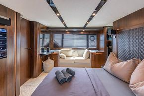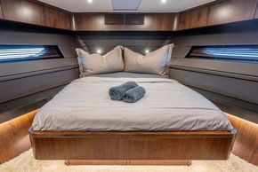 Welcoming to market an extremely unique built, highest specification to leave the factory Fairline Targa 65 GTO built in 2019. Fitted with the ultra rare MAN V8-1200hp engines currently running with 750 engine hours. Only 2 built 65's were fitted with the MAN engine variant. This 65 also has a very unique layout to most having 3 cabins and the lower galley layout, the saloon has a custom saloon with desk, sofas and sideboard. The options list on this particular boat is extensive, some highlights include: Bow and stern hydraulic thrusters / Hydraulic passerelle / Hydraulic hi-low platform / Seakeeper 16 Gyroscopic stabiliser / Custome twin seabob storage in garage with charger / Flexi teak throughout platform, cockpit and side decks / Galley with top end Miele appliances / Cockpit with extended teak table / Wetbar upgraded with tepenyaki grill, storage and additional fridge / Water maker / Joystick control / Radar / AIS / Upgraded battery systems / Onan cummins Generator / Garmin navigational equipment / Sonos audio system with 20 speakers and a subwoofer / Smart tv's throughout / Upgraded stainless steel delta anchor 85kg with reinforced supports / Automatic Humphries trim tabs / Trawling mode for super smooth low speed manoeuvring and the list is just endless. She also has a Williams 345 in the tender garage available by separate negotiations. All 2026 pre season works are completed so she is a turn key solution for your new season!
